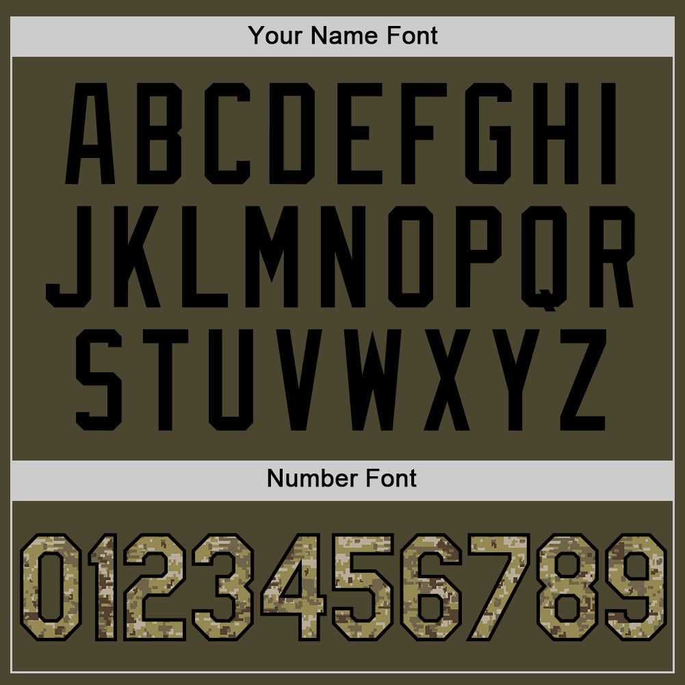 Custom Olive Camo Black-Old Gold Authentic Throwback Salute To Service Baseball Jersey