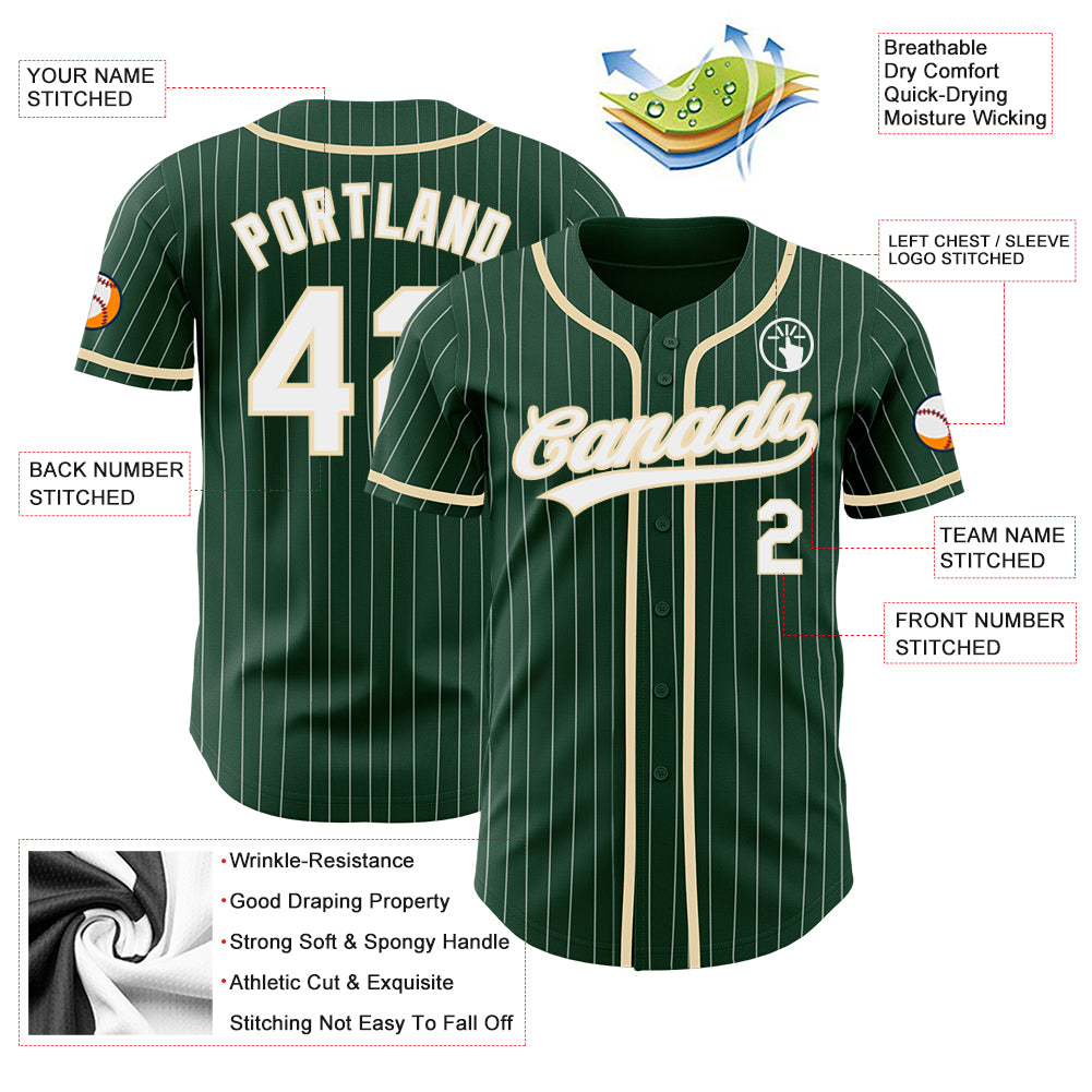 Custom Green White Pinstripe City Cream Authentic Baseball Jersey