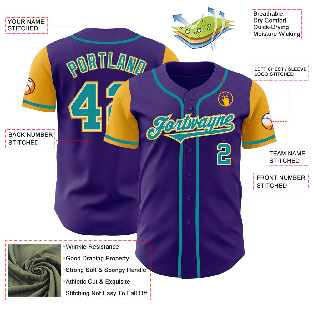 Custom Purple Teal-Gold Authentic Two Tone Baseball Jersey