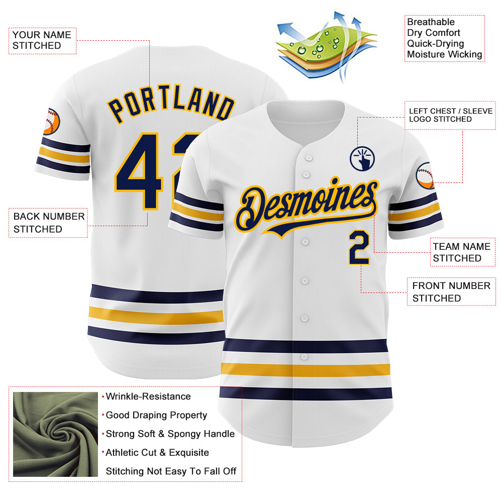 Custom White Navy-Gold Line Authentic Baseball Jersey