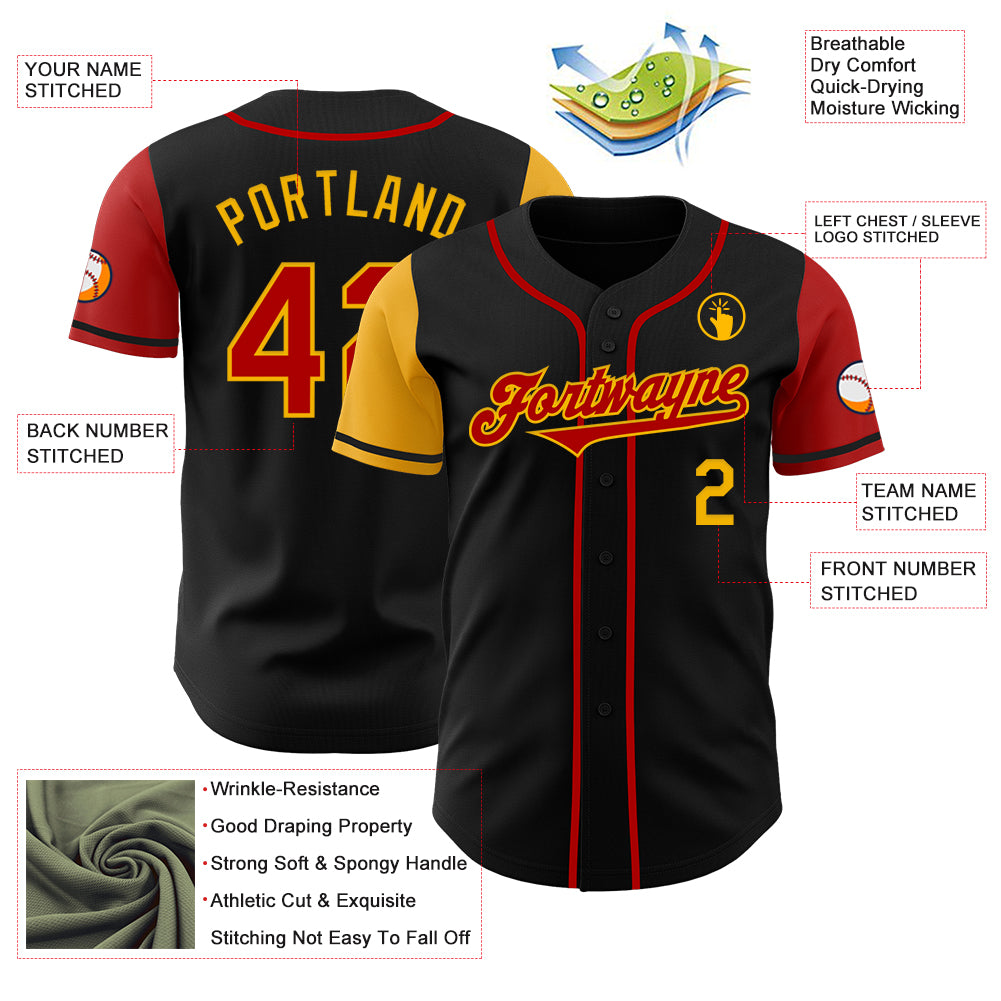 Custom Black Red-Gold Authentic Two Tone Baseball Jersey