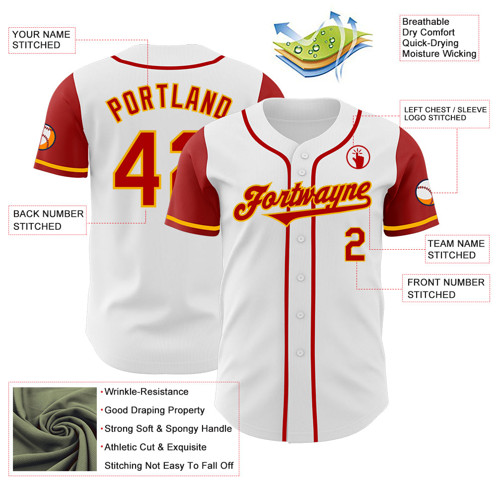 Custom White Red-Gold Authentic Two Tone Baseball Jersey