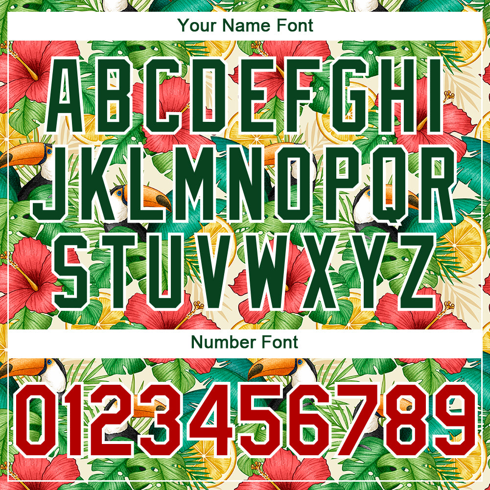 Custom White Red-Green 3D Pattern Design Tropical Plant And Bird Authentic Baseball Jersey