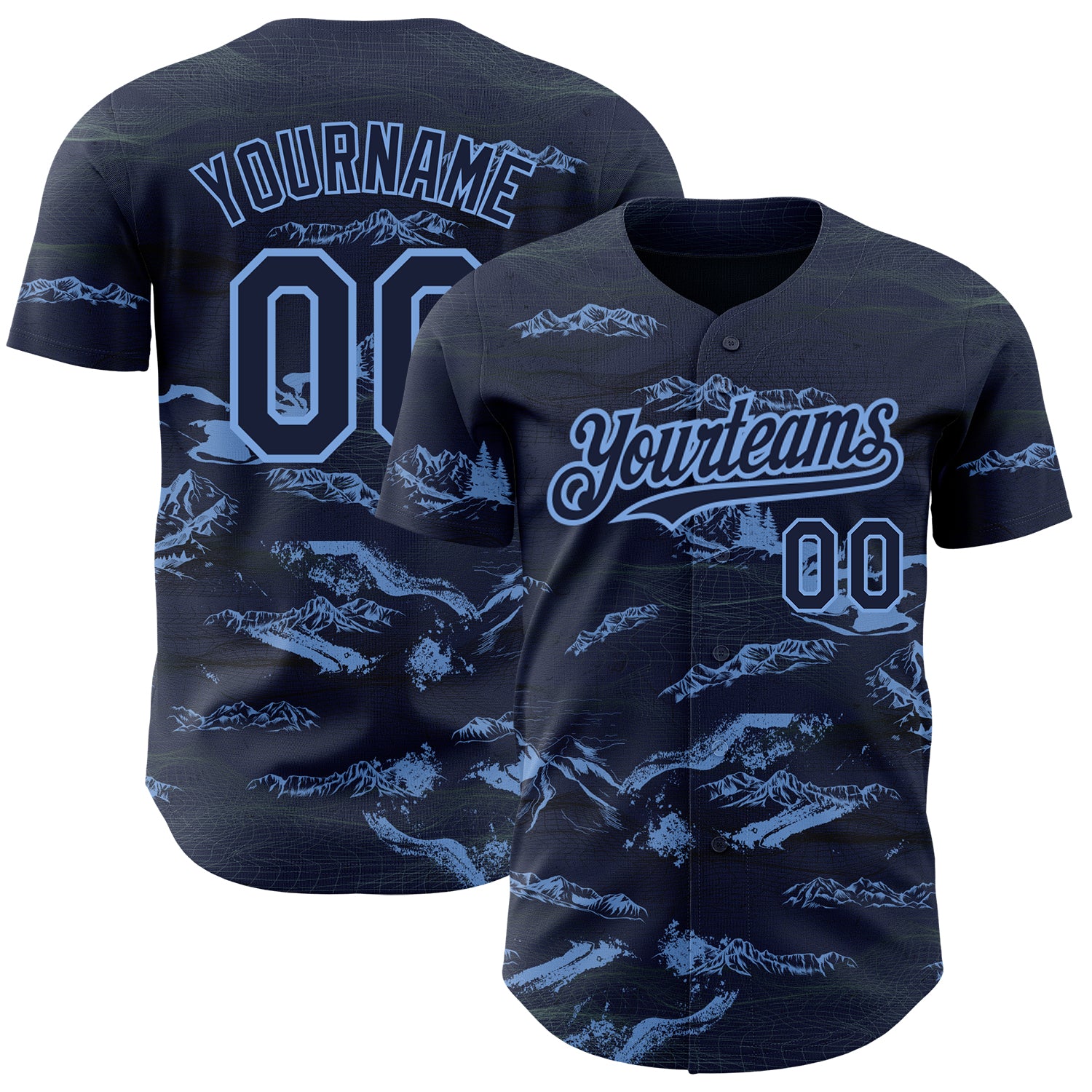 Custom Navy Light Blue 3D Pattern Design Mountain Authentic Baseball Jersey