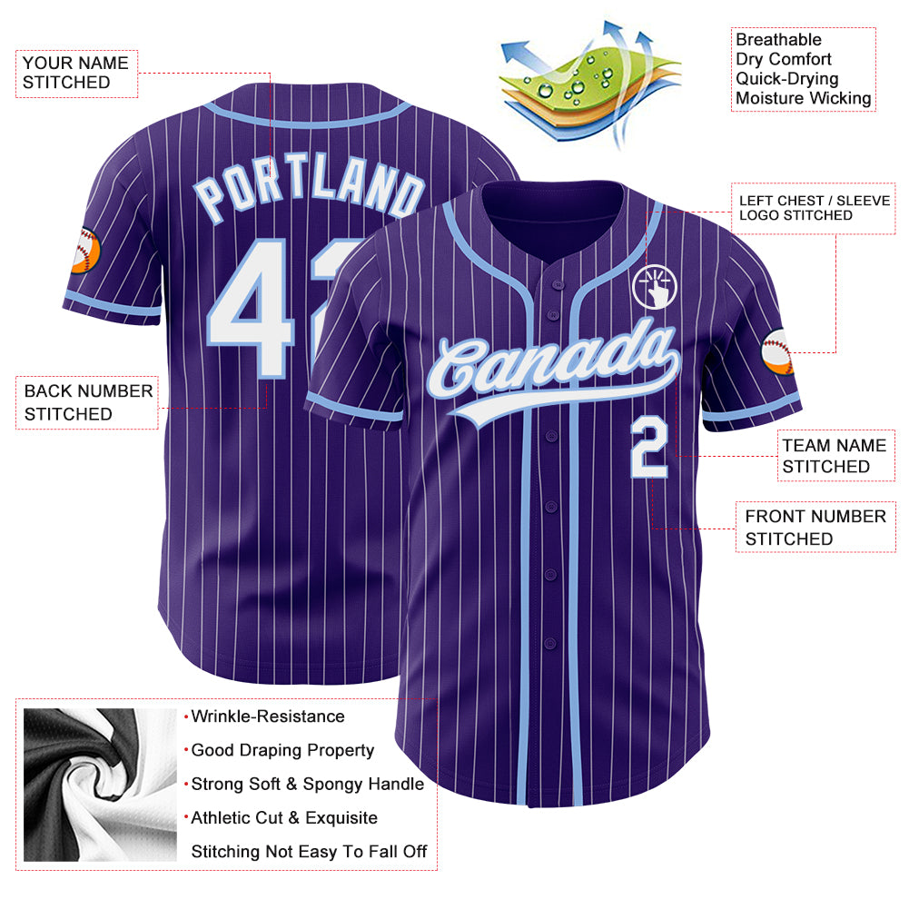 Custom Purple White Pinstripe Light Blue Authentic Baseball Jersey
