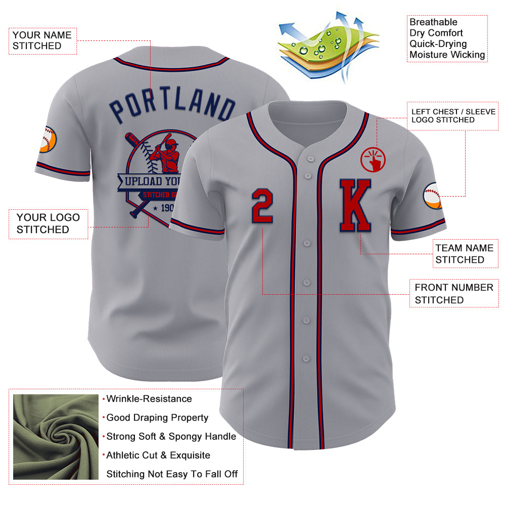 Custom Gray Red-Navy Authentic Baseball Jersey