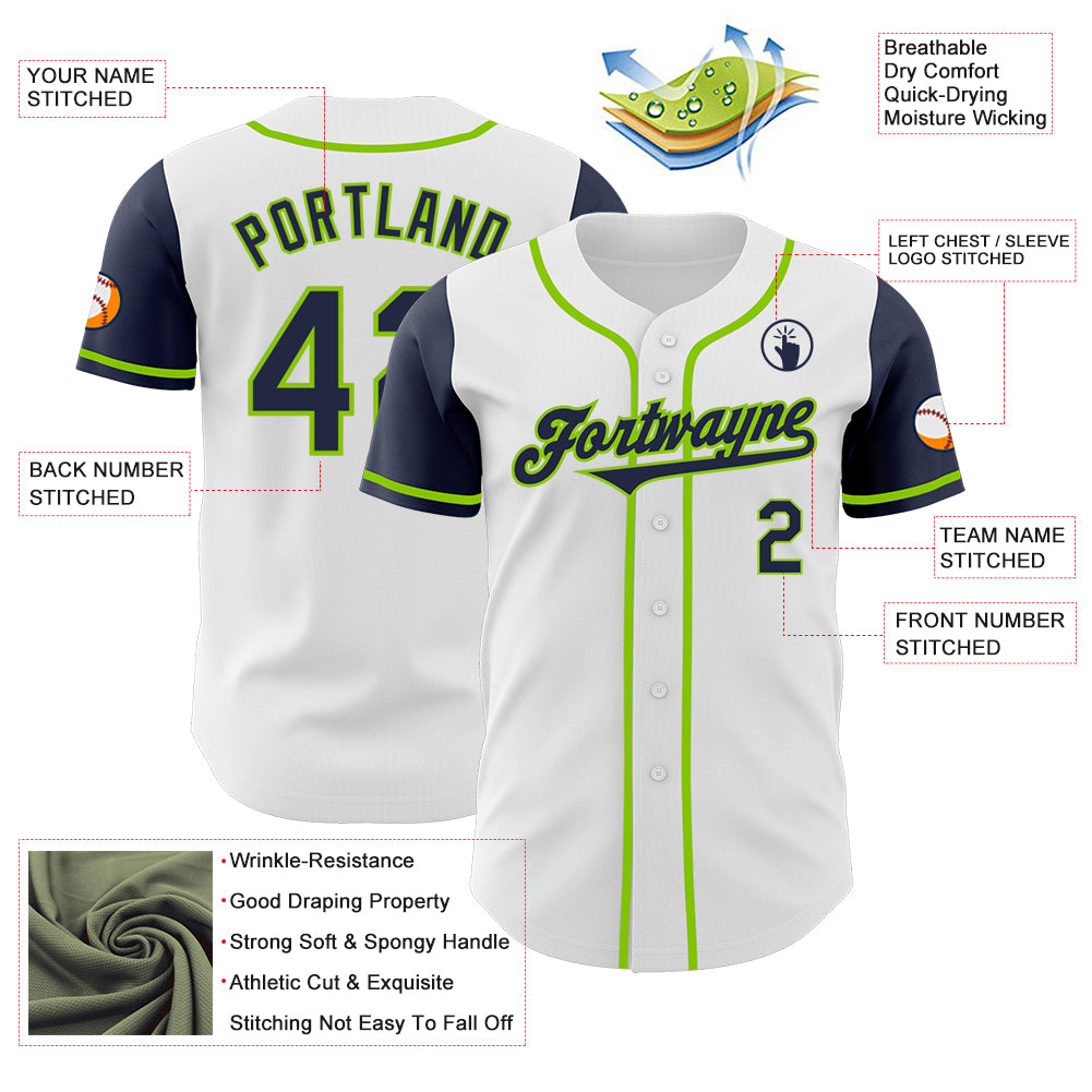 Custom White Navy-Neon Green Authentic Two Tone Baseball Jersey