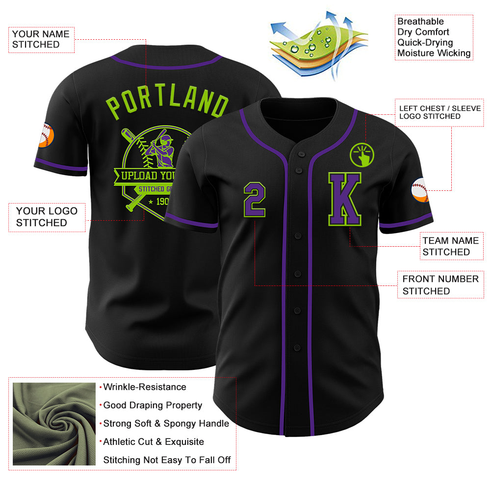 Custom Black Purple-Neon Green Authentic Baseball Jersey