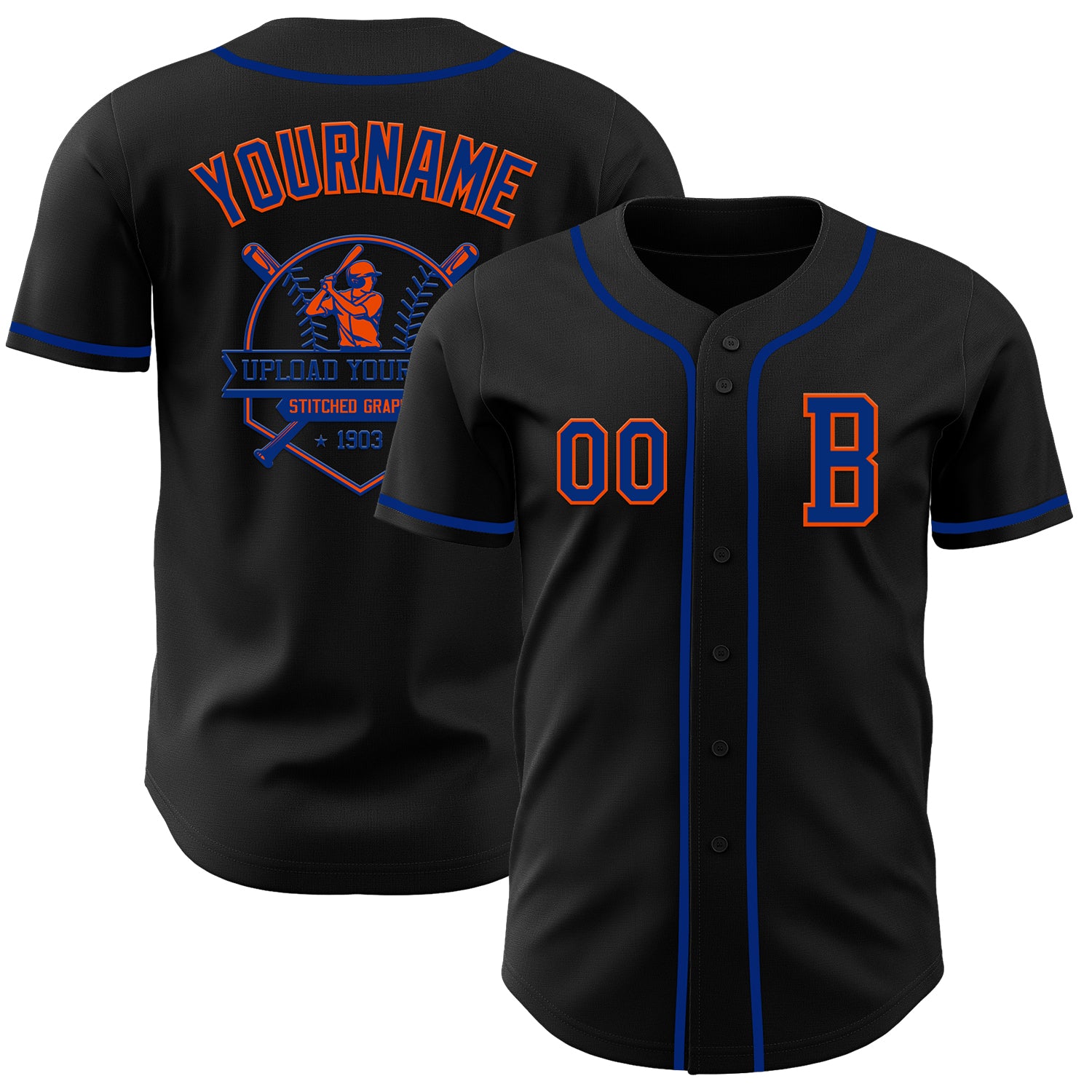 Custom Black Royal-Orange Authentic Baseball Jersey