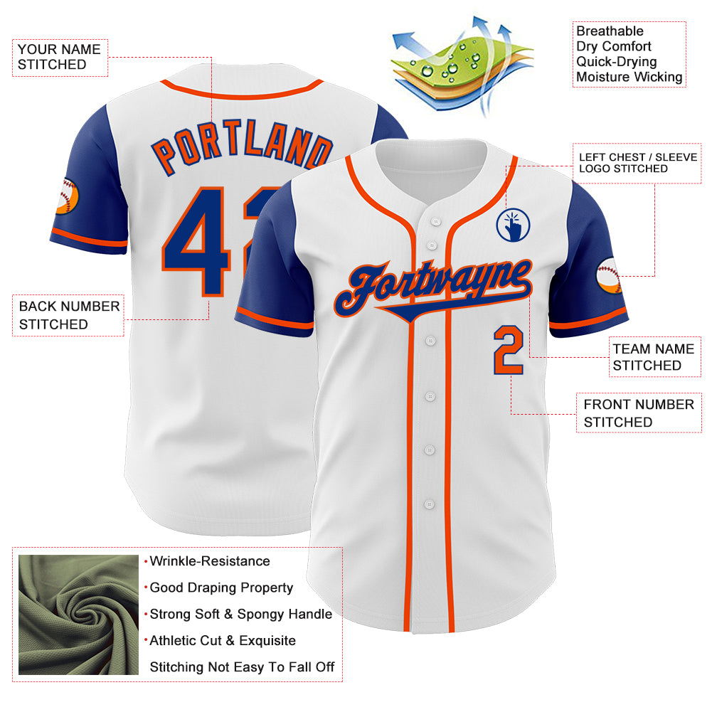 Custom White Royal-Orange Authentic Two Tone Baseball Jersey