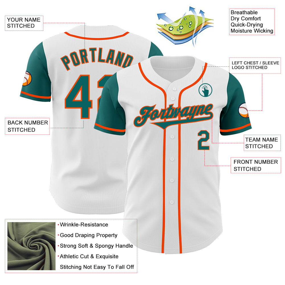 Custom White Teal-Orange Authentic Two Tone Baseball Jersey