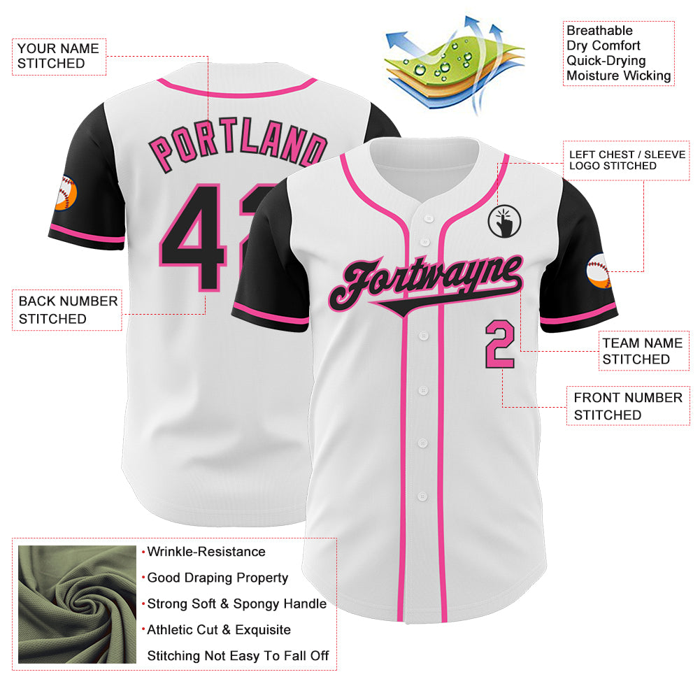 Custom White Black-Pink Authentic Two Tone Baseball Jersey