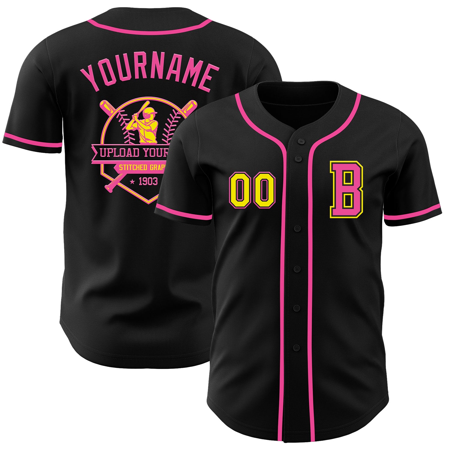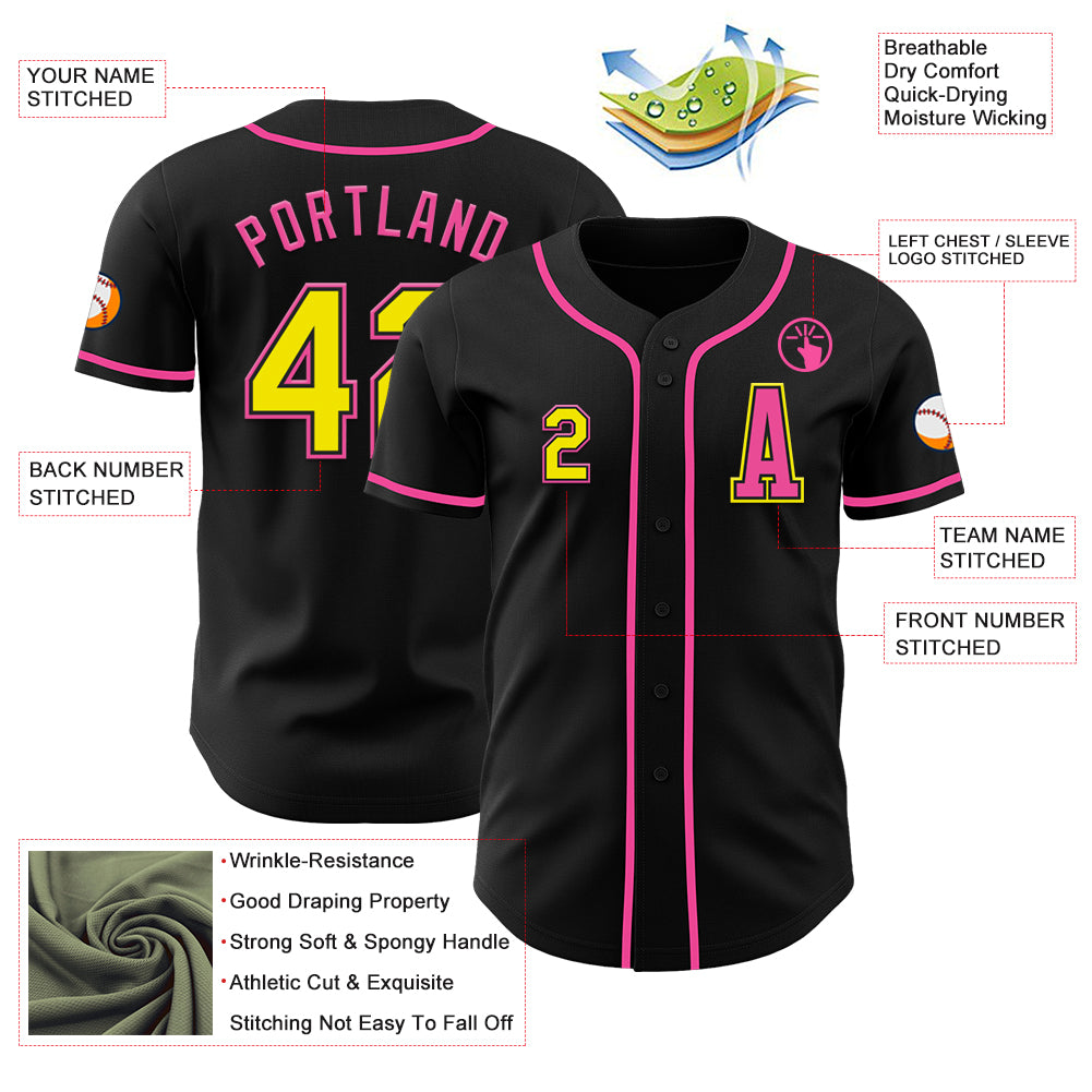 Custom Black Light Yellow-Pink Authentic Baseball Jersey