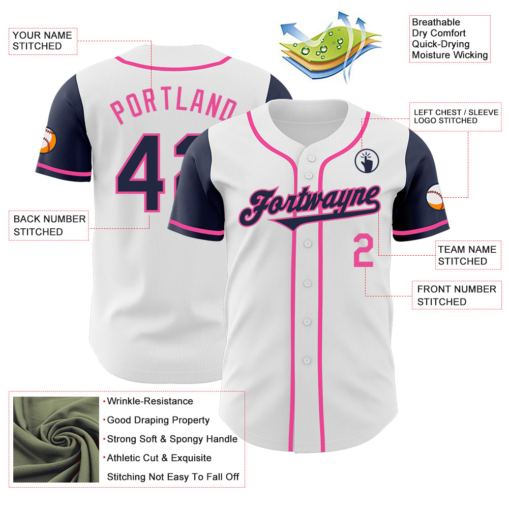Custom White Navy-Pink Authentic Two Tone Baseball Jersey