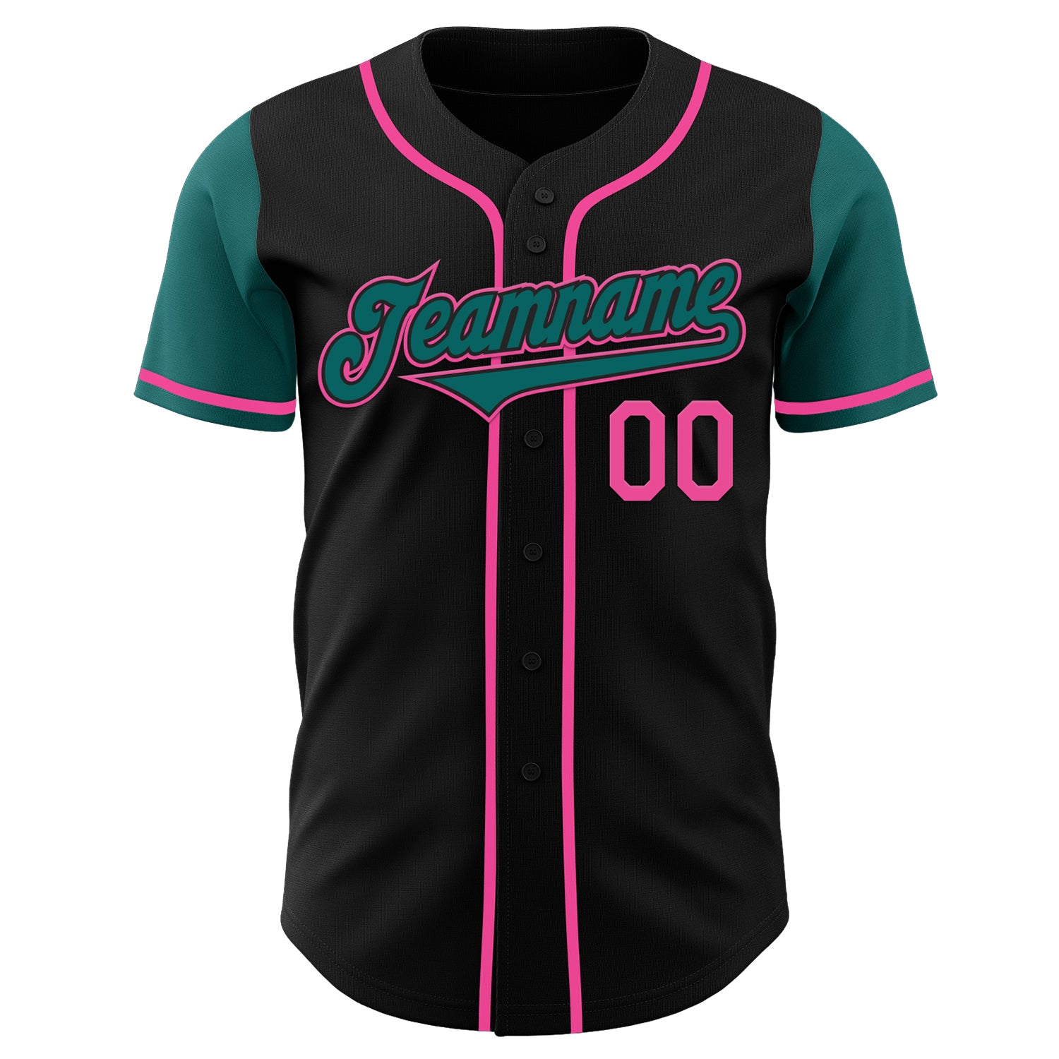 Custom Black Teal-Pink Authentic Two Tone Baseball Jersey