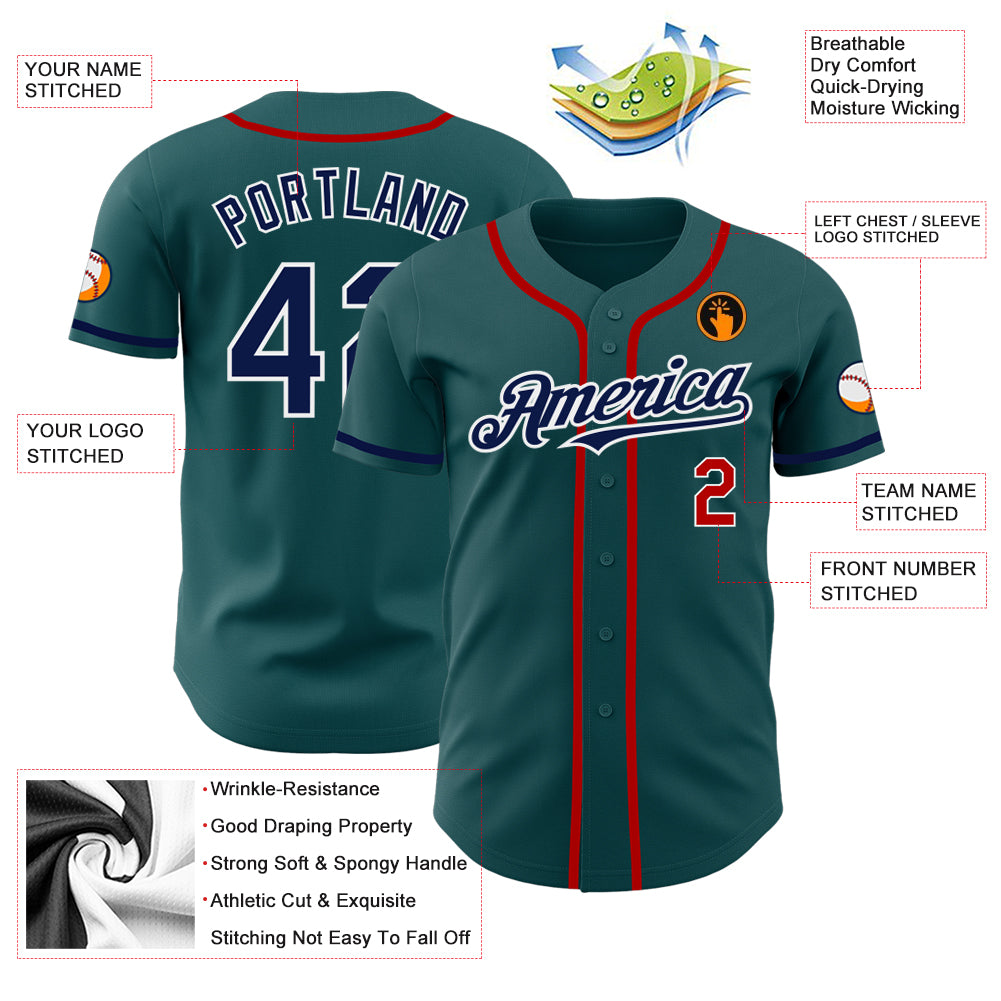 Custom Midnight Green Navy-Red Authentic Baseball Jersey