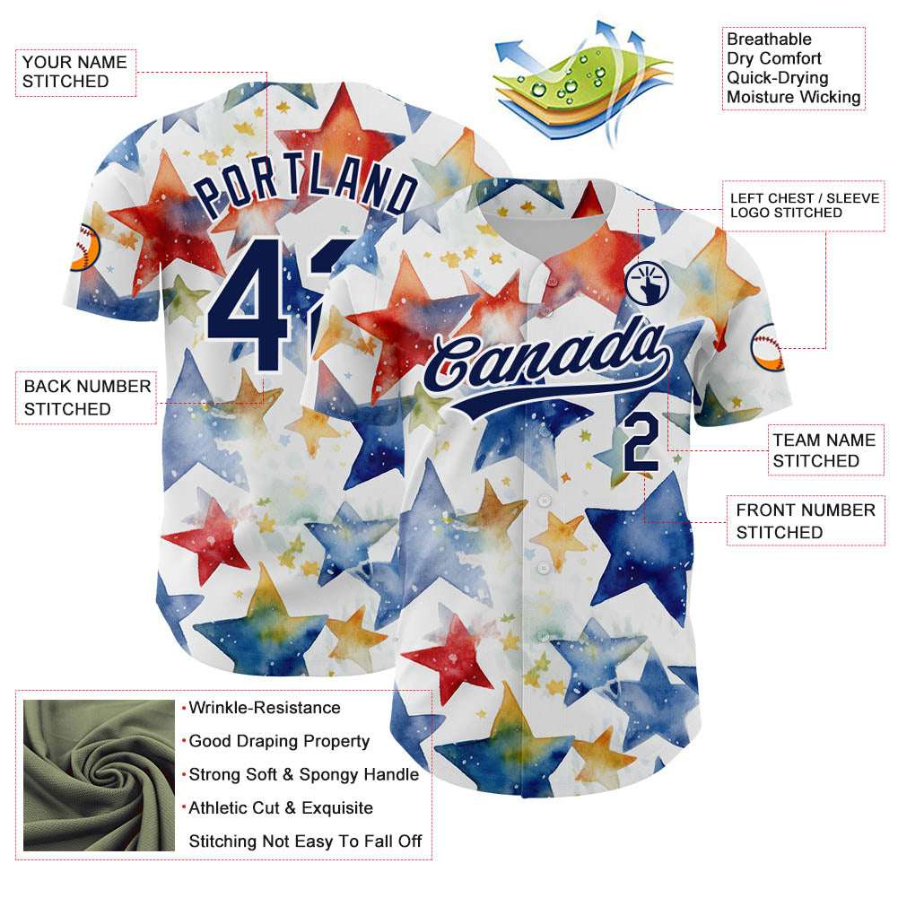 Custom White Navy-Red 3D Pattern Design Stars Authentic Baseball Jersey