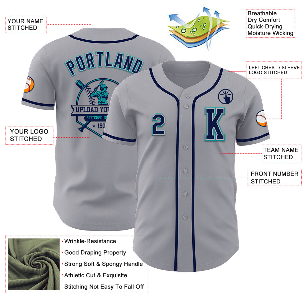 Custom Gray Navy-Teal Authentic Baseball Jersey
