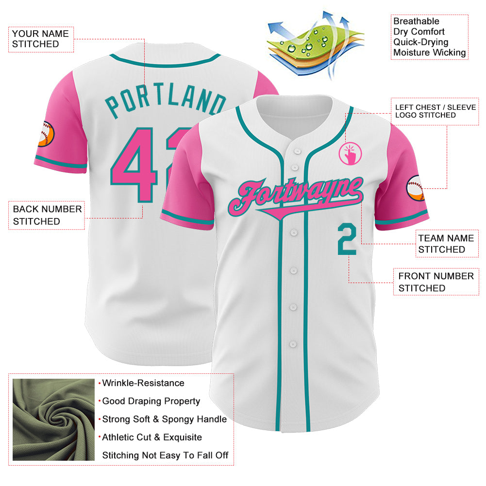 Custom White Pink-Teal Authentic Two Tone Baseball Jersey