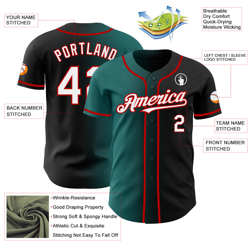Custom Black White Teal-Red Authentic Gradient Fashion Baseball Jersey