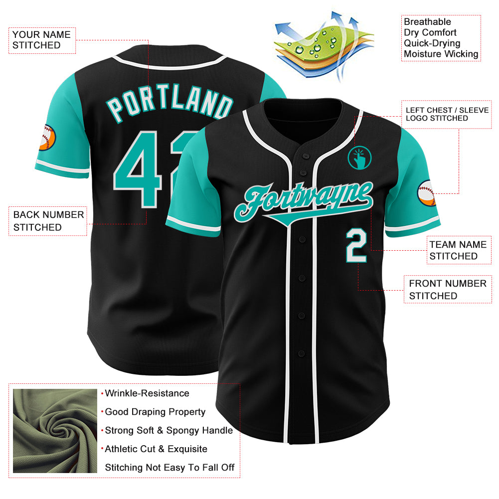 Custom Black Aqua-White Authentic Two Tone Baseball Jersey