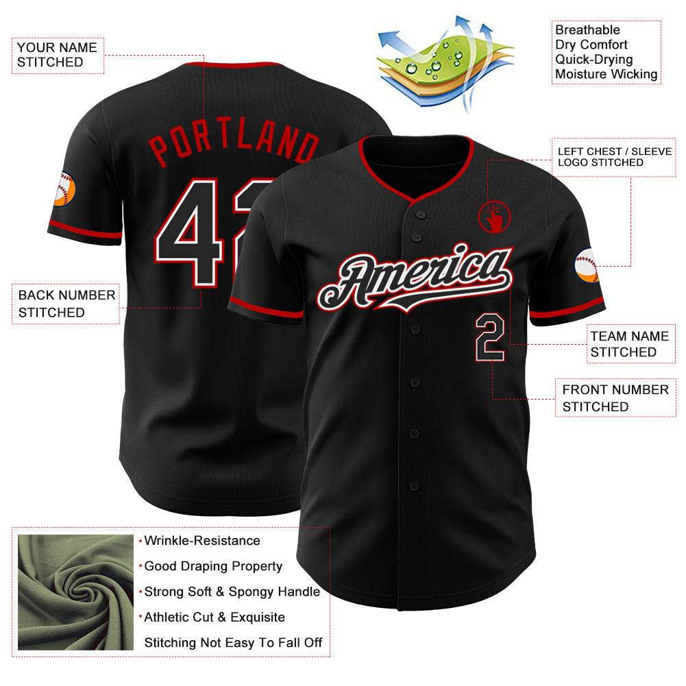 Custom Black White-Red Authentic Baseball Jersey