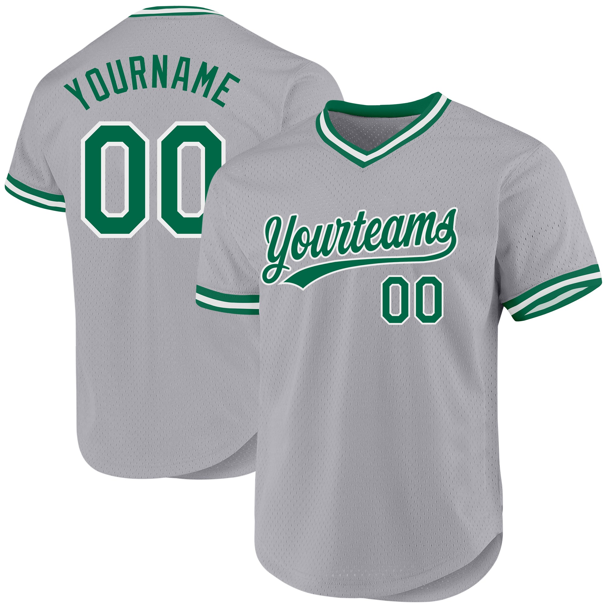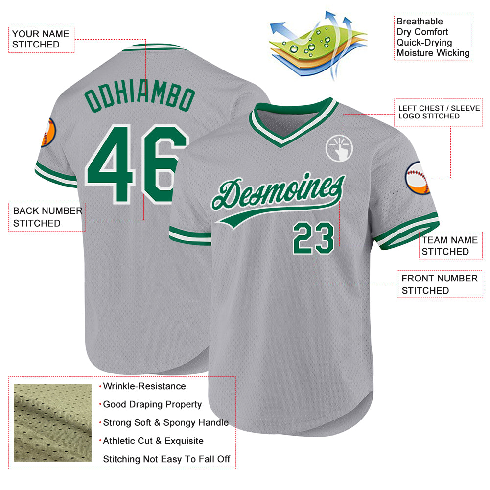 Custom Gray Kelly Green-White Authentic Throwback Baseball Jersey