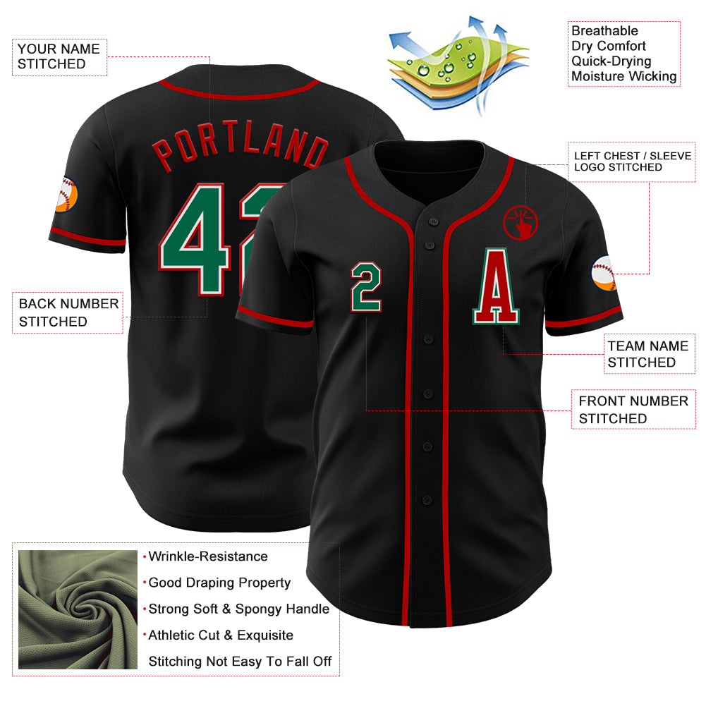 Custom Black Kelly Green-Red Authentic Baseball Jersey