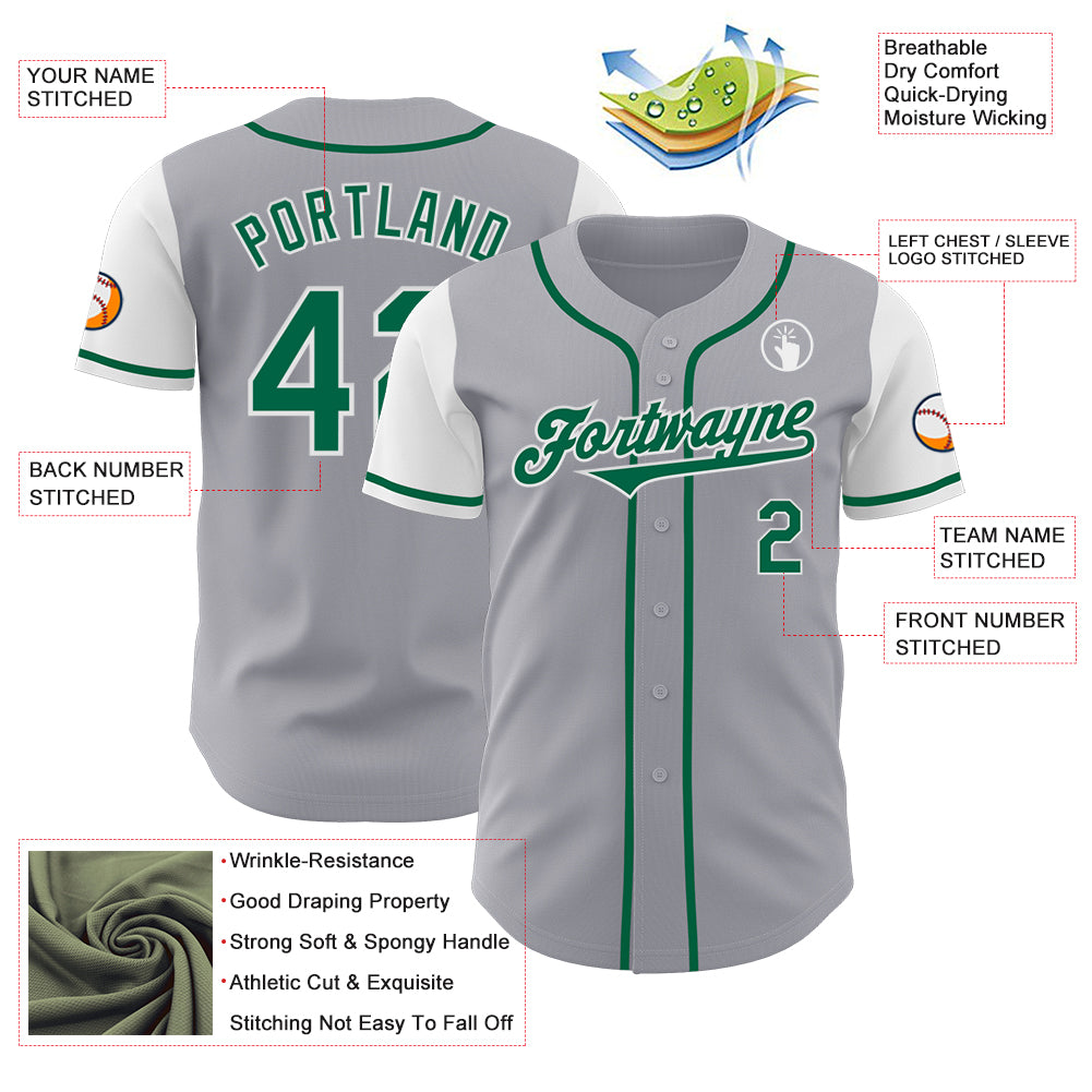 Custom Gray Kelly Green-White Authentic Two Tone Baseball Jersey