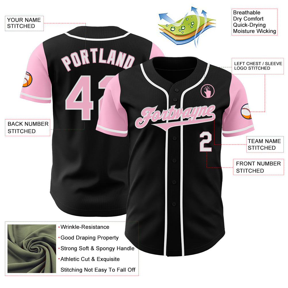 Custom Black Light Pink-White Authentic Two Tone Baseball Jersey