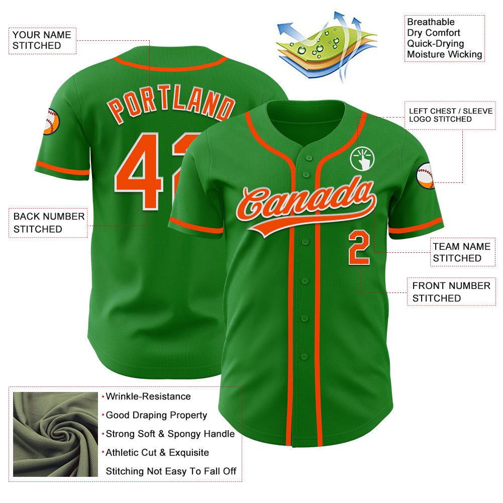 Custom Grass Green Orange-White Authentic Baseball Jersey