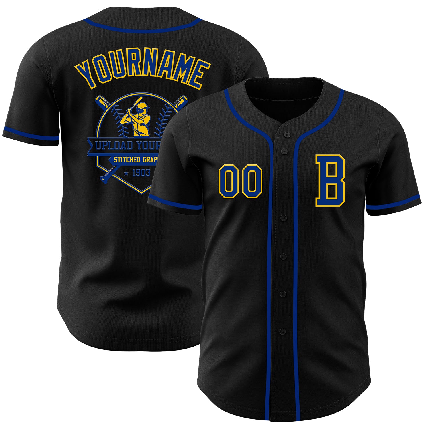 Custom Black Royal-Yellow Authentic Baseball Jersey
