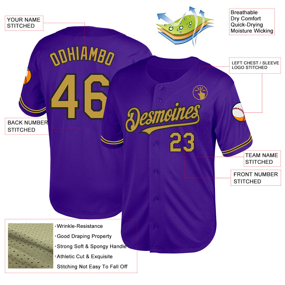 Custom Purple Old Gold-Black Mesh Authentic Throwback Baseball Jersey