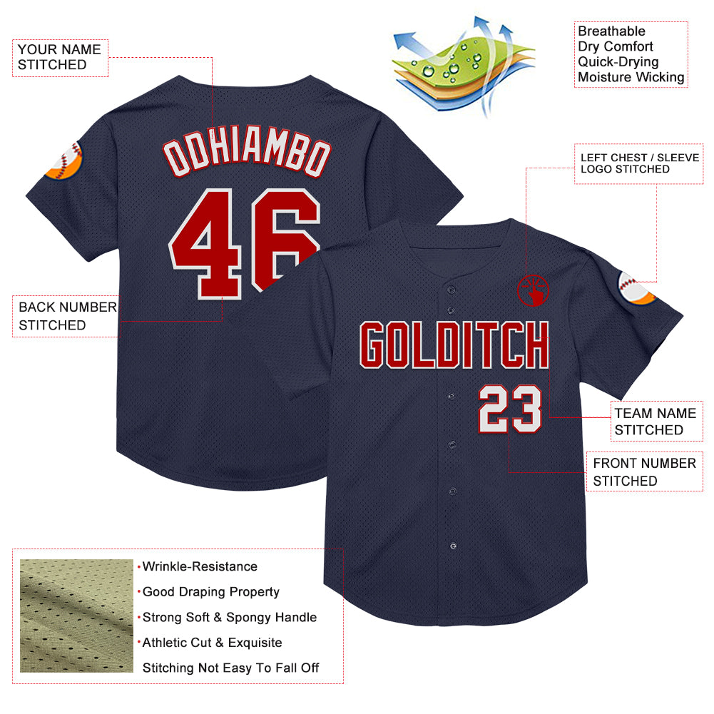 Custom Navy Red-White Mesh Authentic Throwback Baseball Jersey