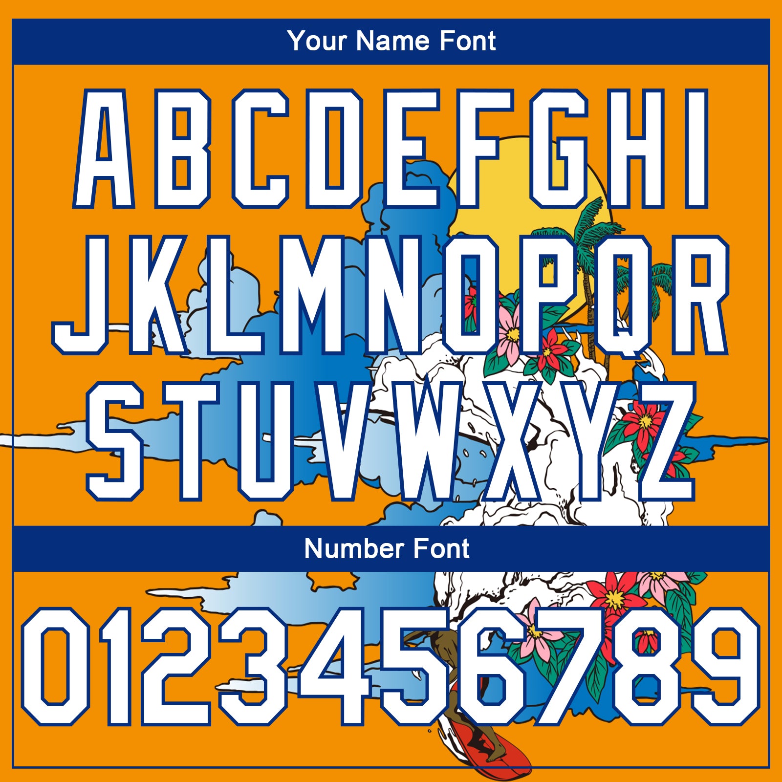 Custom Bay Orange White-Royal 3D Pattern Tropical Beach Hawaii Palm Trees Authentic Basketball Jersey