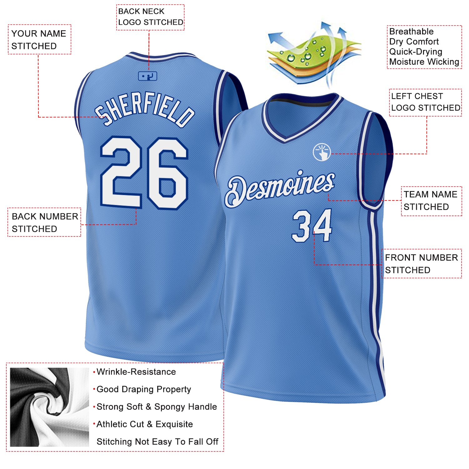 Represent your distinct look with this custom basketball jersey from our web. It boasts stitched tackle twill name & number and classic trims along with moisture-wicking technology for added comfort.