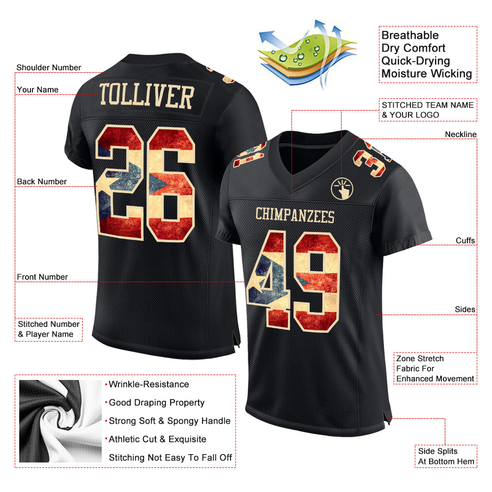 Custom Black Vintage Puerto Rican Flag-City Cream Mesh Authentic Football Jersey