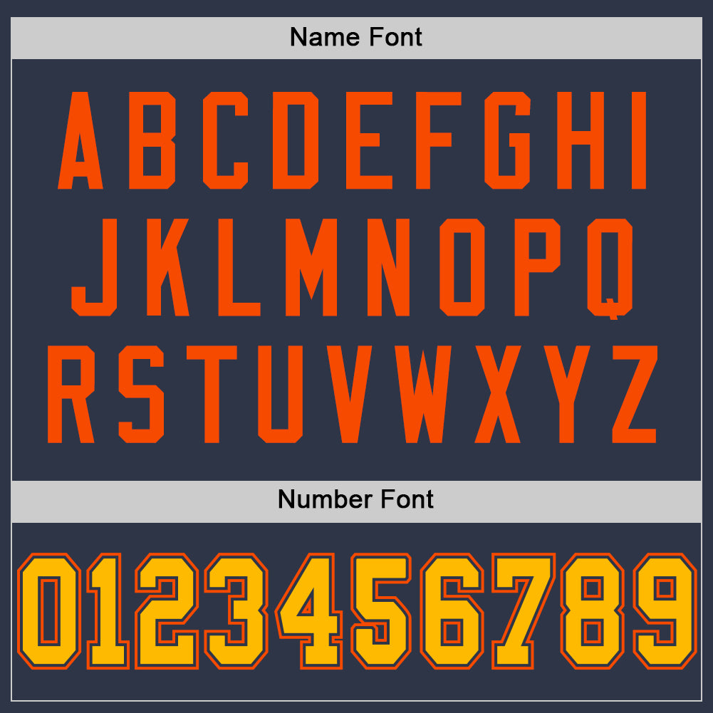 Custom Navy Gold-Orange Mesh Authentic Throwback Football Jersey