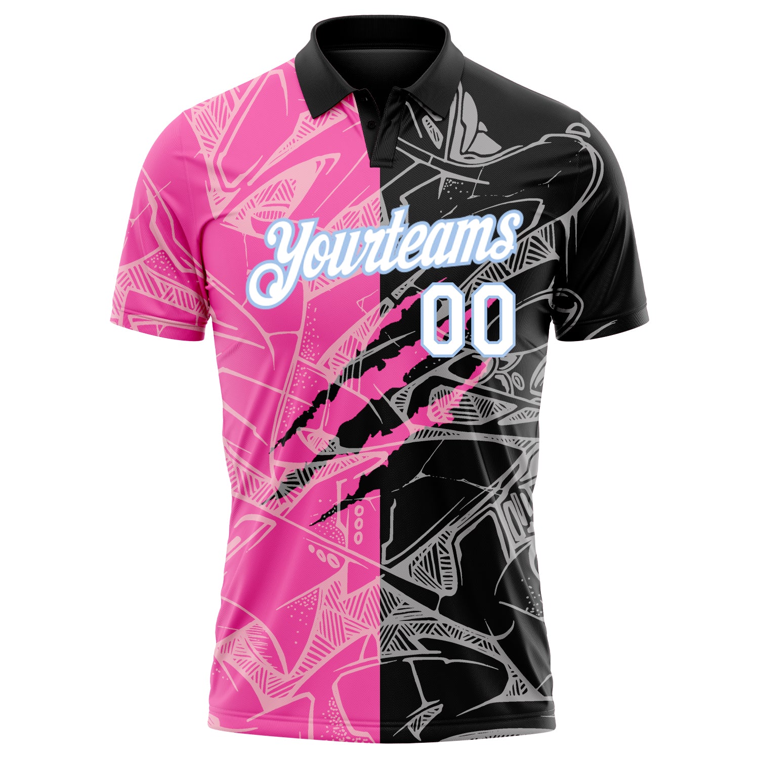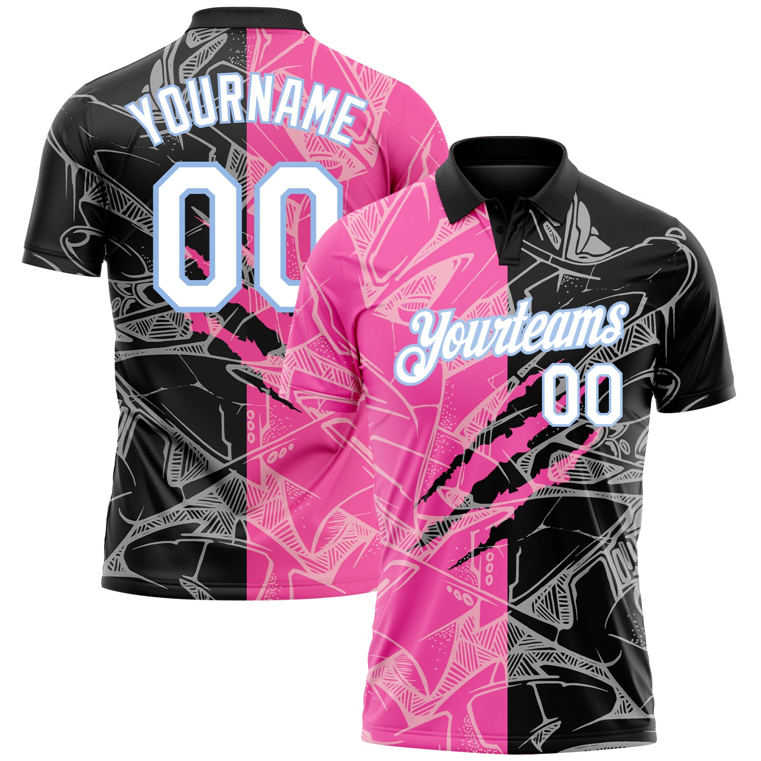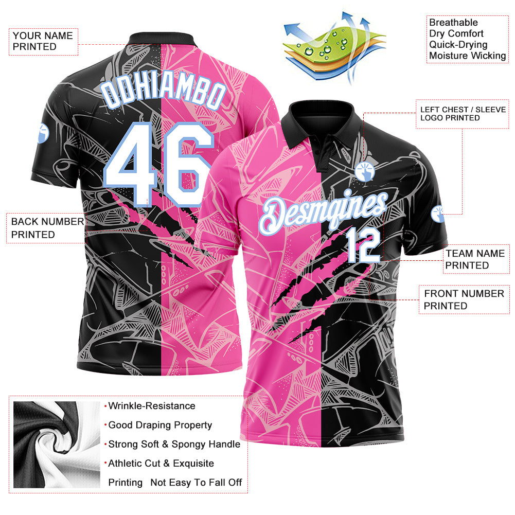 Custom Graffiti Pattern White-Light Blue 3D Scratch Performance Golf Polo Shirt