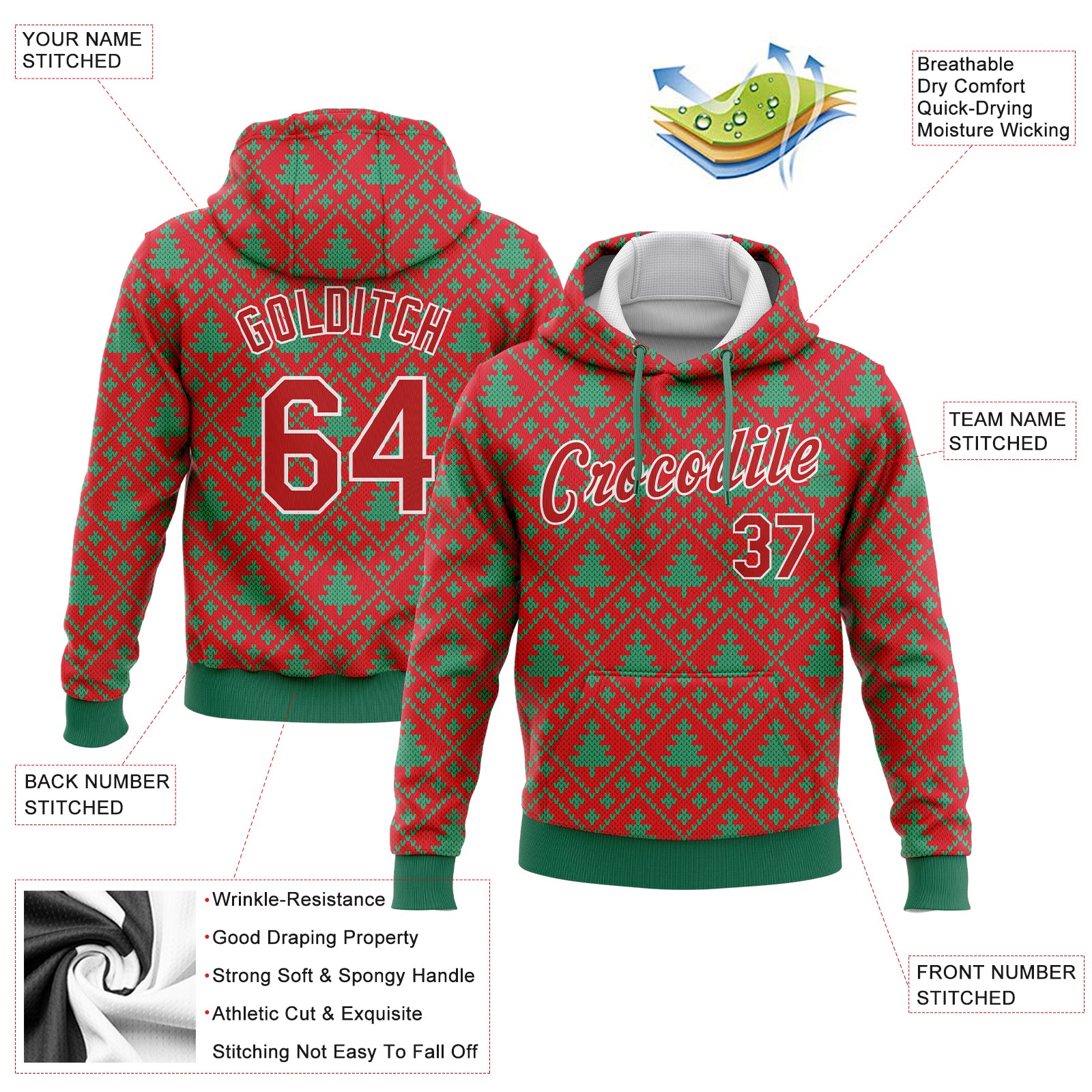 Custom Stitched Red Red-Kelly Green 3D Christmas Trees Sports Pullover Sweatshirt Hoodie