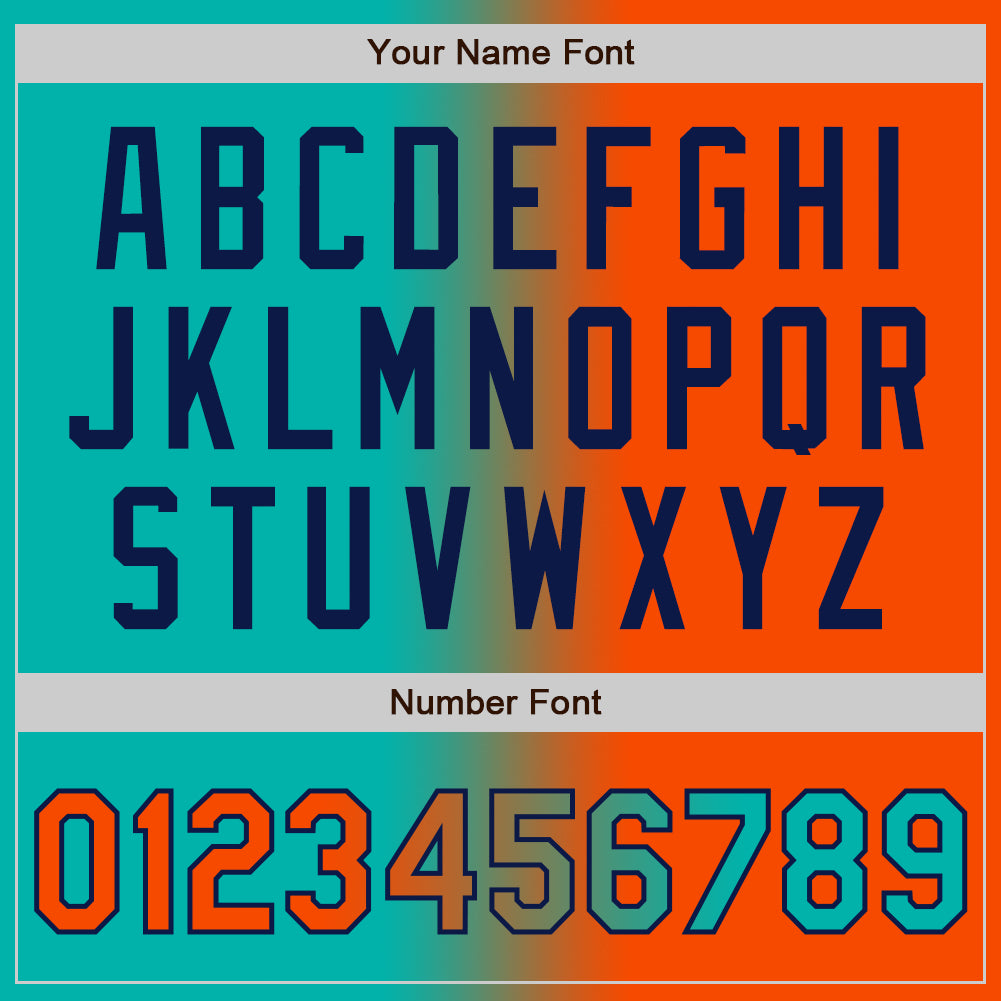 Custom Aqua Orange-Navy Bomber Full-Snap Varsity Letterman Gradient Fashion Jacket