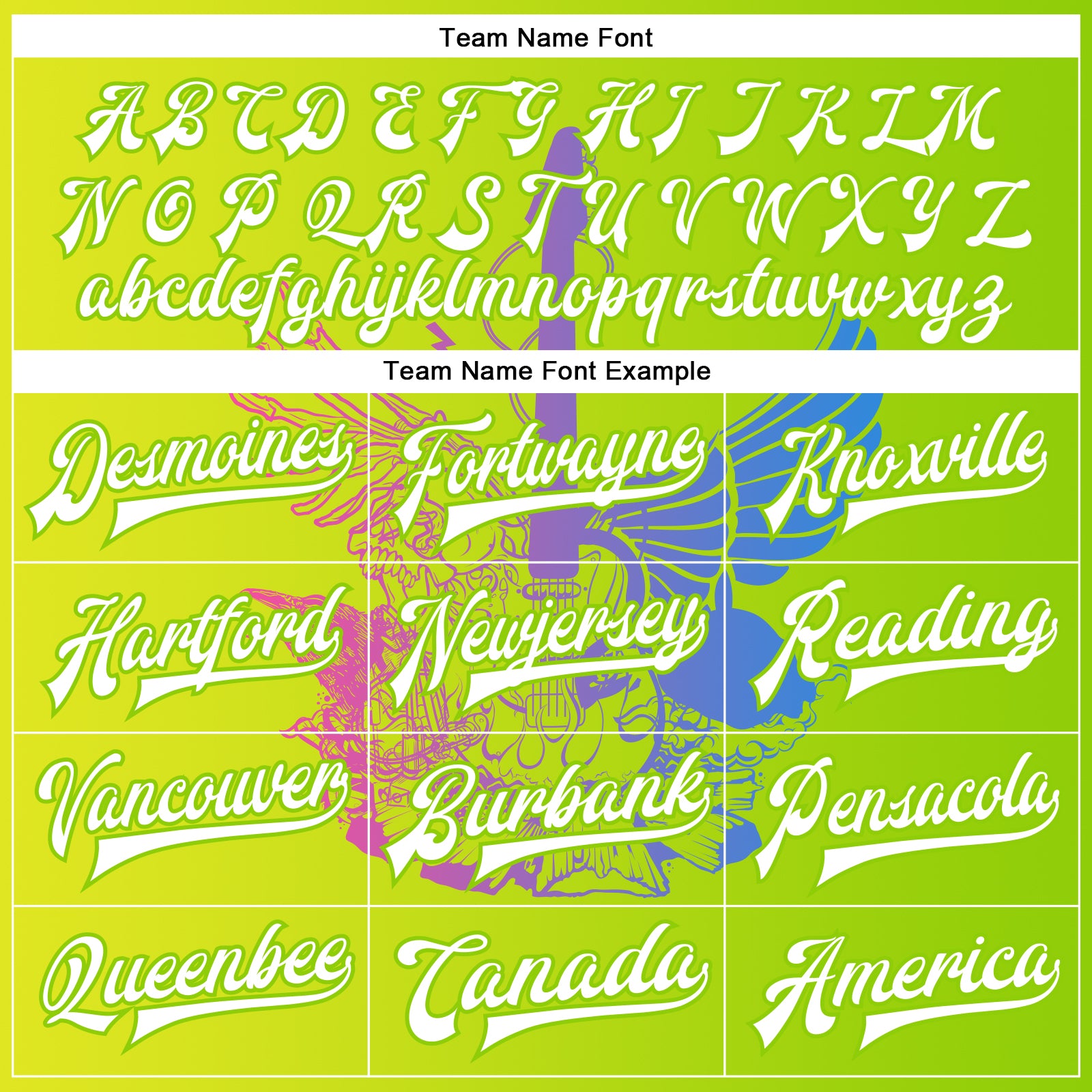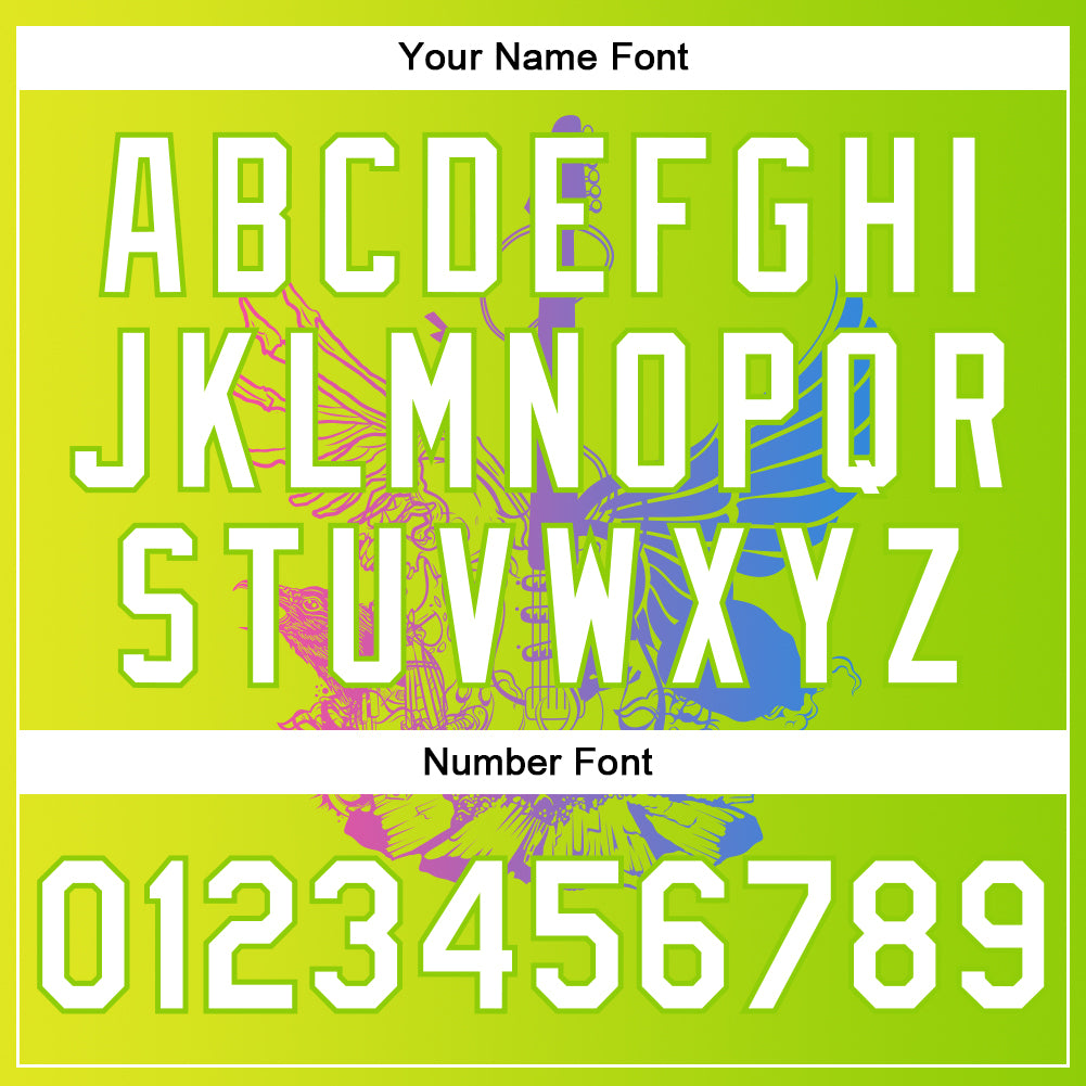 Custom Neon Green White-Neon Yellow Guitar Rock Roll Music Festival 3D Pattern Design Bomber Full-Snap Varsity Letterman Gradient Fashion Jacket