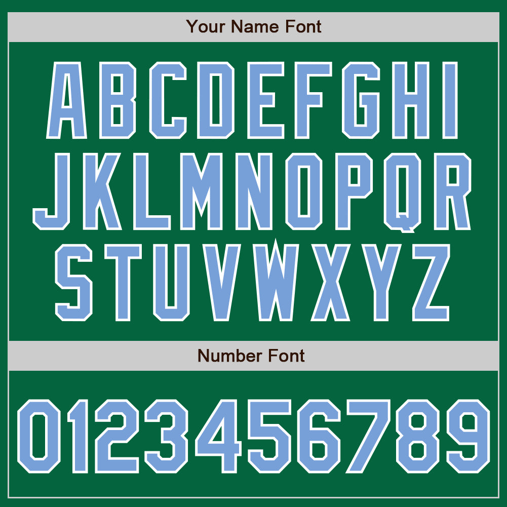 Custom Kelly Green Light Blue-White Bomber Full-Snap Varsity Letterman Two Tone Jacket