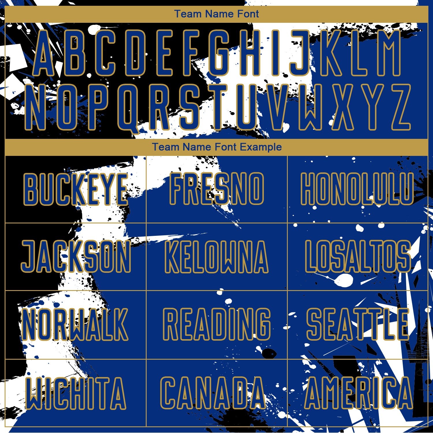 Custom Black Royal-Old Gold Spalsh Sublimation Soccer Uniform Jersey