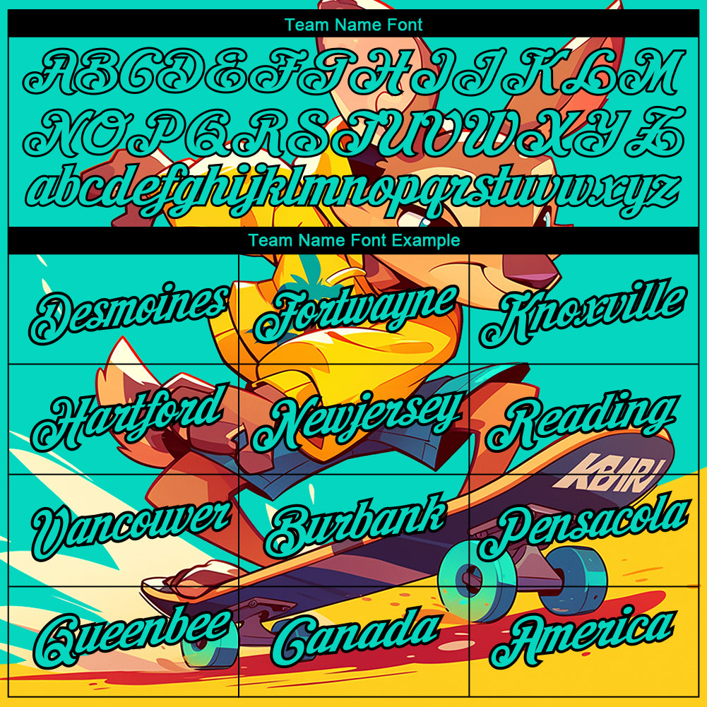Custom Aqua Black 3D Pattern Design Extreme Sport Cartoon Animal Kangaroo Skateboarding Performance T-Shirt