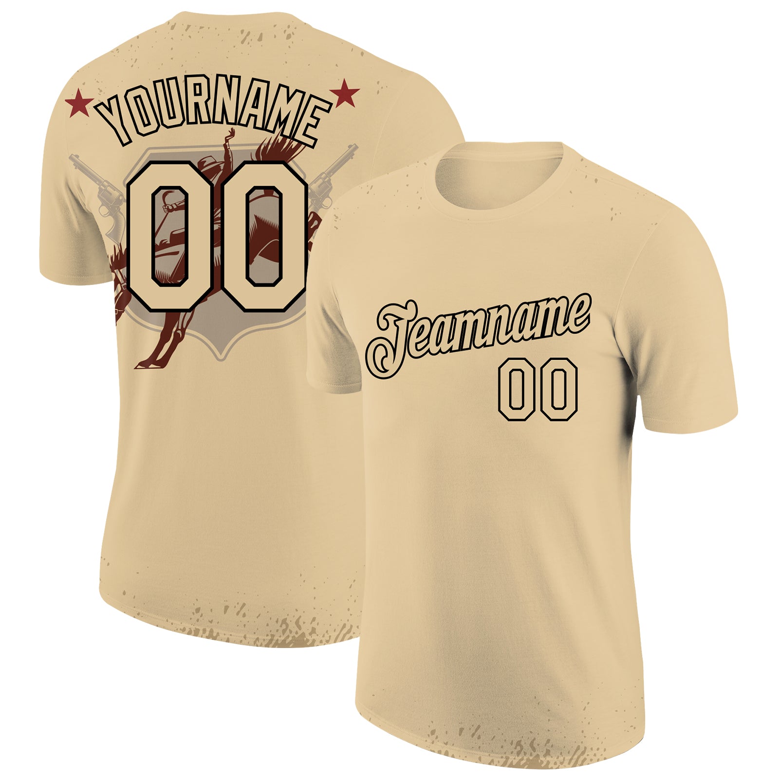 Custom City Cream Black 3D Pattern Design Cowboy Rodeo Performance T-Shirt
