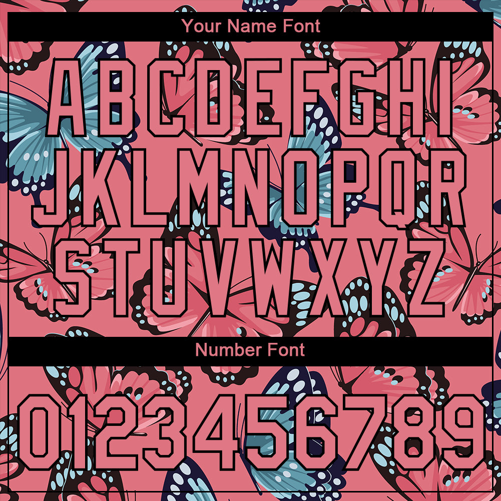 Custom Medium Pink Black 3D Pattern Design Butterfly Performance T-Shirt