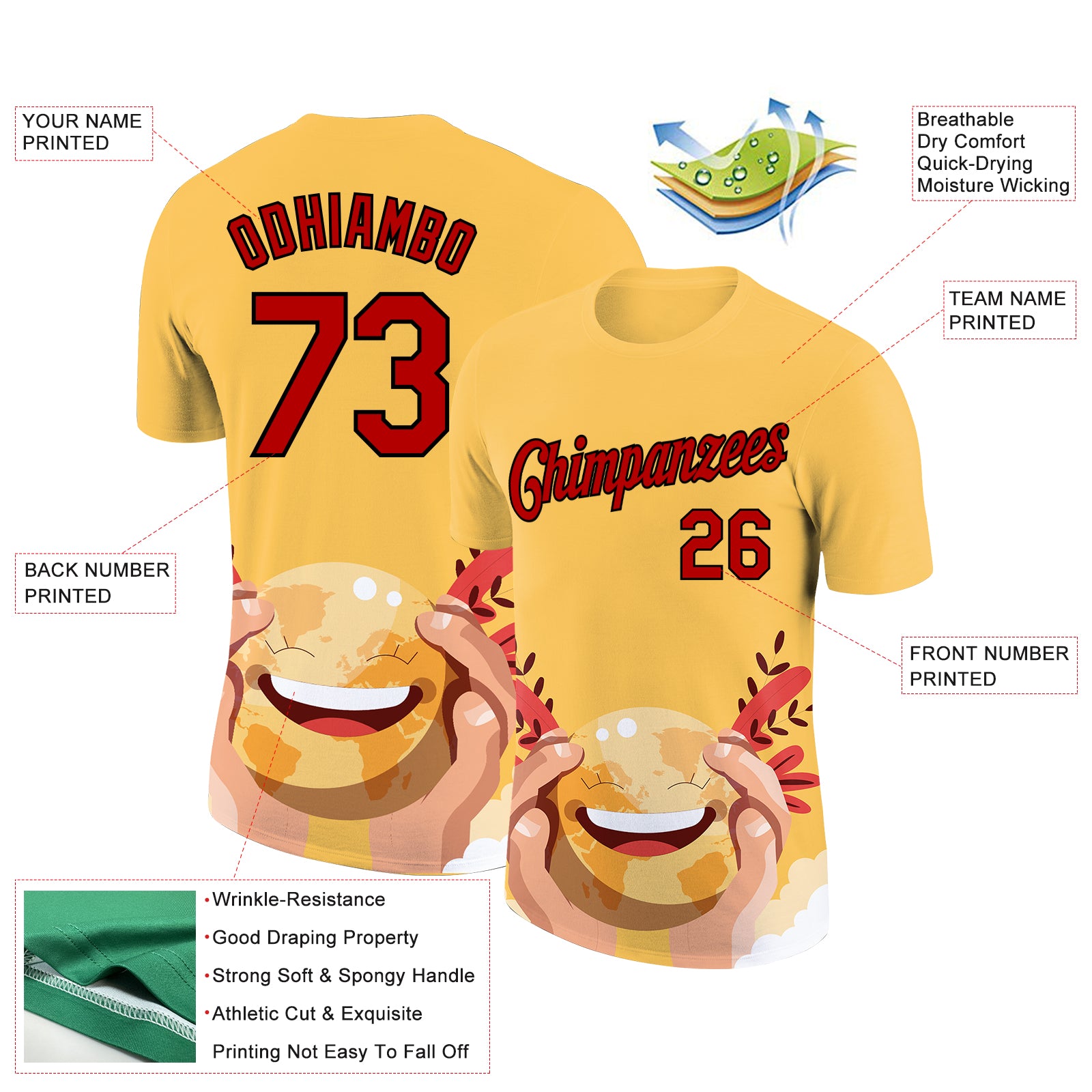 Custom Yellow Red-Black 3D Pattern Design Smile Emoji Performance T-Shirt