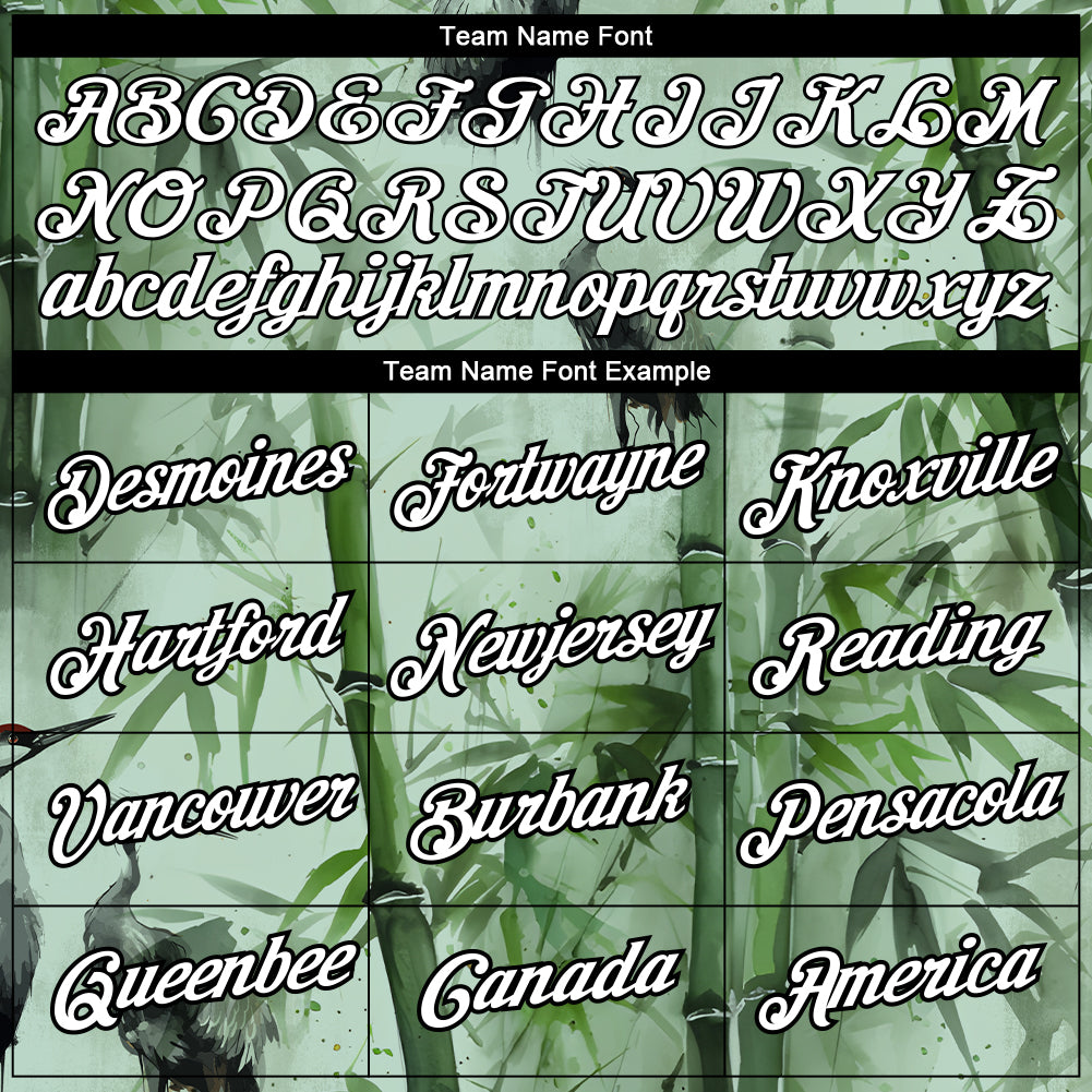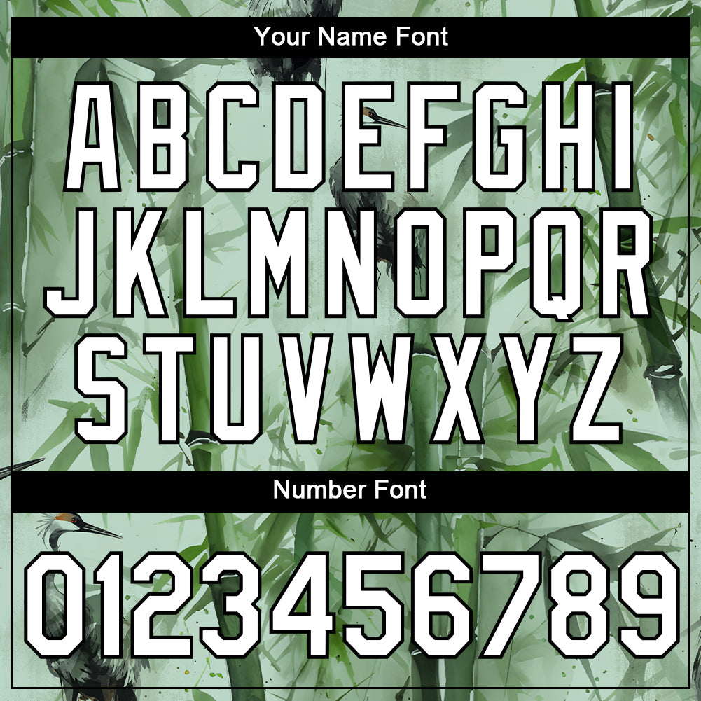 Custom Green White-Black 3D Pattern Design Bamboo And Crane Performance T-Shirt