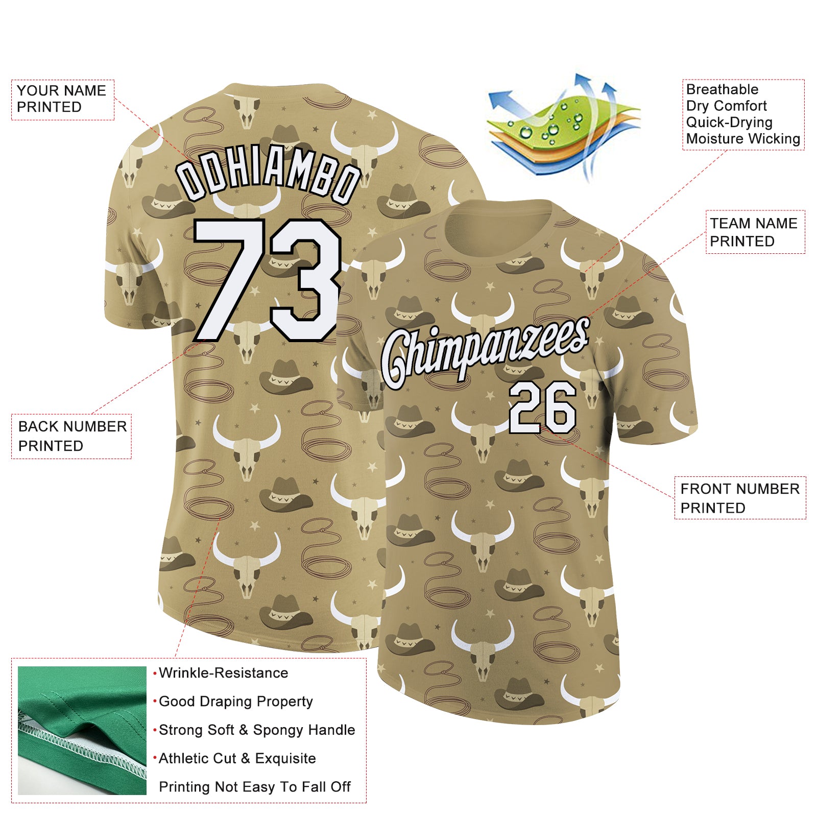 Custom Vegas Gold White Black 3D Pattern Design Cowboy Accessory Performance T-Shirt